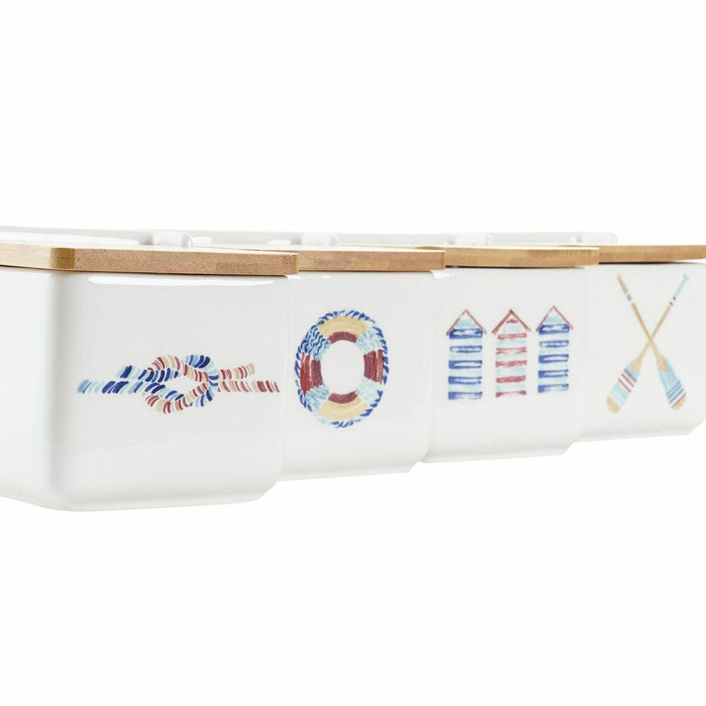 Zoutvaatje met deksel DKD Home Decor Navy Multicolour Bamboe Dolomite 12,5 x 12,5 x 11,5 cm