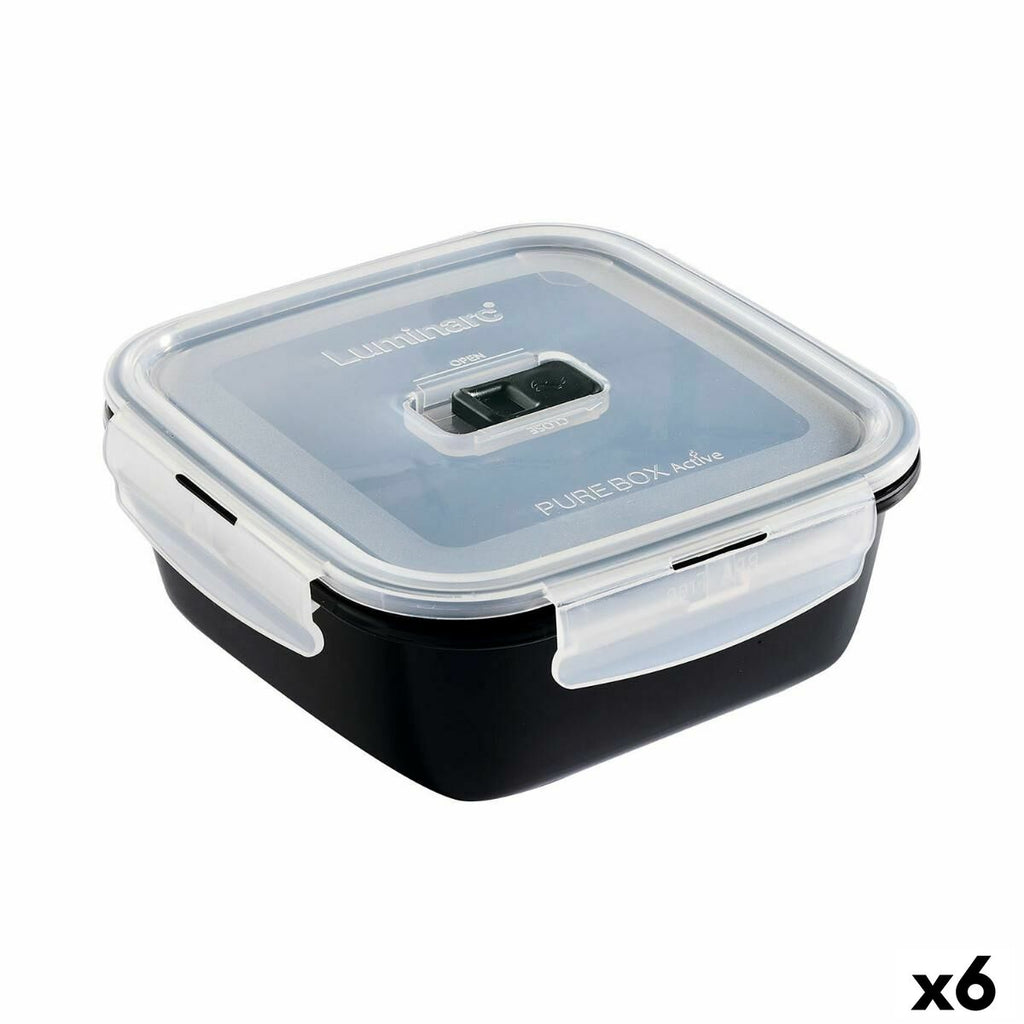 Hermetische Lunchtrommel Luminarc Pure Box Zwart 1,22 L Glas (6 Stuks)