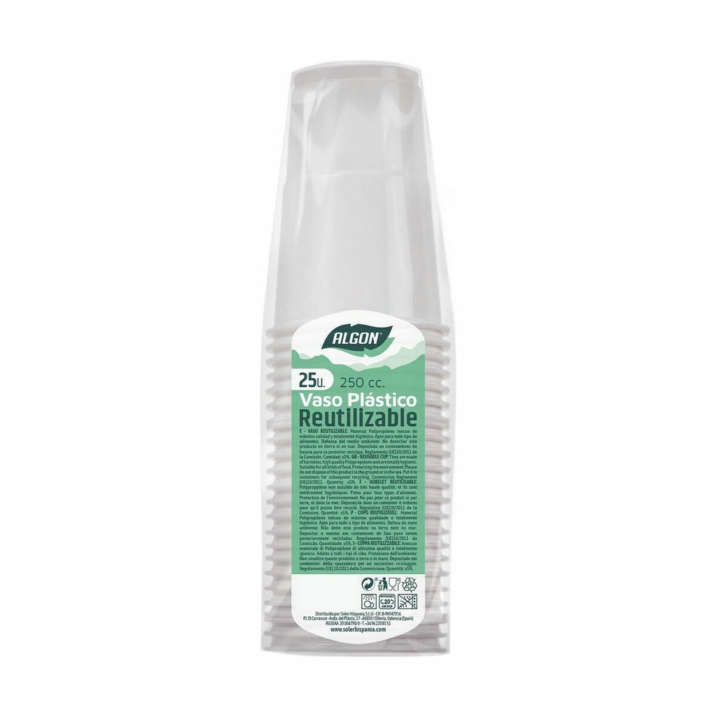 Set van herbruikbare glazen Algon Wit 25 Onderdelen 250 ml (48 Stuks)