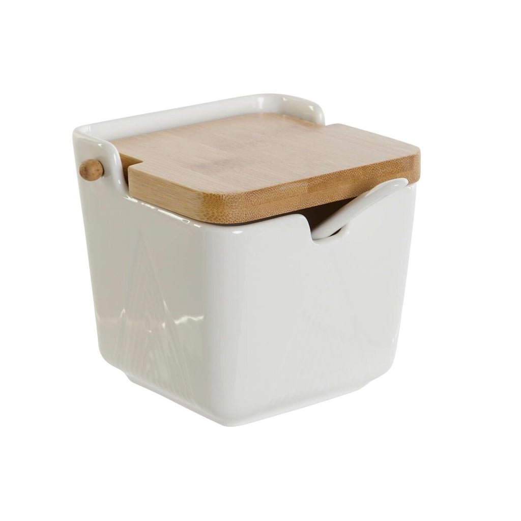 Suikerpot DKD Home Decor Wit Natuurlijk Bamboe Porselein 10,5 x 9 x 9 cm